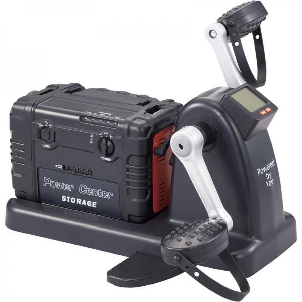 〇商品説明あらゆるギフトシーンに! ご自宅用にも!まわしてチャージ 充電丸PROは、自分の手足で漕いで充電できる自家発電機です。今までのダイエット器具ではよくあったエクササイズペダルですが、その運動をしたエネルギーを充電バッテリーに貯めることが可能になりました。女性でも持てる重さなのでアウトドアや非常時に大活躍です。前回転、後ろ回転、いずれもご使用いただけます。ACアダプターでの直接充電も可能です。Evolutionモデルより充電速度が2.5倍に、ラジオとBluetoothを追加しバージョンアップしました。電池リチウムイオン電池52500mAh LED100?130ルーメン 〇商品仕様セット内容バッテリー、充電ユニット、滑り止めマット、ACアダプター(2m)、単4電池×1(モニター用)、USB C to Aケーブル(約60cm)出力AC100V1A DC(縦)5V1A DC(横)5V2A 電源AC100V 入力15V 1.5A 出力波形正弦波 充電時間(時間)漕いで充電する場合約23?25、アダプターで充電する場合約23 寸法(縦×横×高さH)(cm)34×37×27 コンセントAC100V60Hz用コンセント1基(100W以下の使用) USBポート2基(1Aと2A) Bluetoothver5.2 内容量1台USBケーブルの収納場所について、分かり辛い所に収納されており、バッテリーの側面にある、「Power Center STORAGE」と記載されている所にケーブルが収納されております。カバーは、「DOOR OPEN」部分を左にスライドしていただくと開くようになっております。規格セット内容バッテリー、充電ユニット、滑り止めマット、ACアダプター(2m)、単4電池×1(モニター用)、USB C to Aケーブル(約60cm) 出力AC100V1A DC(縦)5V1A DC(横)5V2A 電源AC100V 入力15V 1.5A 出力波形正弦波 充電時間(時間)漕いで充電する場合約23?25、アダプターで充電する場合約23 寸法(縦×横×高さH)(cm)34×37×27 コンセントAC100V60Hz用コンセント1基(100W以下の使用) USBポート2基(1Aと2A) Bluetoothver5.2 内容量1台【注意事項】・シガーソケットを使用し、車からの充電はできません。・本製品を回しながら(充電しながら)の電化製品のご使用はお止めください。・定格電力 100V 消費電力 100W を超える電化製品にはご使用できません。ご使用になる電化製品の取扱説明書に従ってご使用ください。本製品でのご使用による電化製品の故障などについては、一切の責任を負いかねます。・ペダルを毎分 60 回転前後のスピードで回してください。毎分 90 回転以上で回すと、破損する可能性があります。・使用中にペダルの取り付けネジが緩む事があります。定期的に付属のレンチでネジをしっかりと締め直してください。・必ず定期的に充電を行い、半年以上放置しないでください。放電状態による故障の原因になります。・充電しながらの電化製品のご使用はお止めください。故障の原因になります。・本製品は、室内での保管を推奨しております。車や倉庫など高温多湿の場所は避けてください。(出典株式会社 八大)