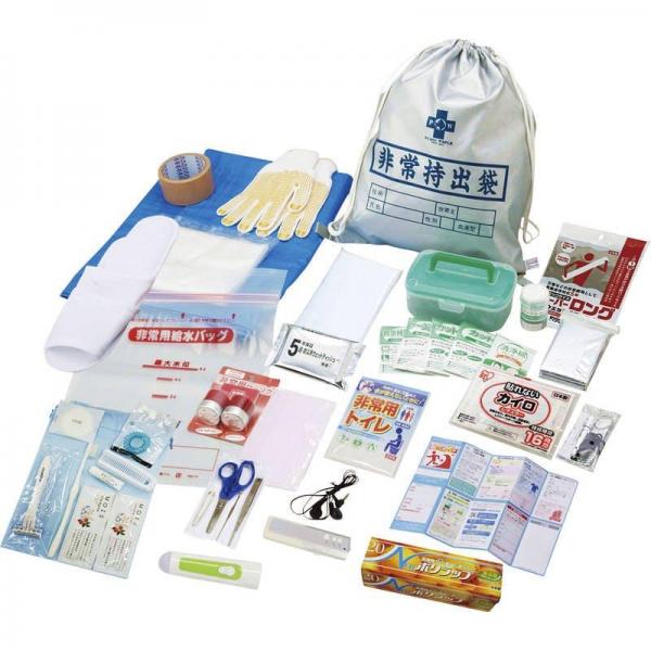 〇商品説明地震や台風などの非常時の備えに。〇商品仕様【パッケージサイズ】300×155×400mm【内容】非常袋445×385×10mm、非常用給水バッグ5L、ゴミ袋45L10枚、ハンディライト(電池別売)、コンパクトFMラジオ(電池別売)、非常用トイレ、防災用ウエットティッシュ20枚、防災ガイド、防寒シート、タオル、すべり止め手袋、ブルーシート2畳用、ホイッスル、マスク、カイロ、スリッパ、ラップ、ウエットボディタオル、ハサミ、ピンセット、耳かき、毛抜き、布テープ、非常用ローソクセット、宿泊セット用ポーチ、カミソリ、ハブラシセット、二つ折りコンパクトブラシ、シャンプー&コンディショナー、石鹸10g、ヘアーバンド、救急箱、カット綿×3枚、カットガーゼ×3枚、包帯、救急絆創膏2サイズ×3枚、サージカルテープ、洗浄綿2枚入×3包【材質】非常袋難燃性ポリエステル【生産国】中国、日本、タイ、マレーシア、インドネシア【パッケージ形態】ダンボール箱入