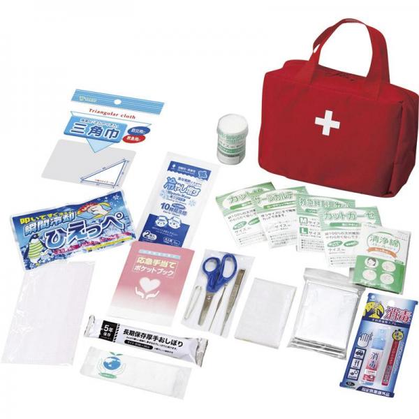 〇商品説明あらゆるギフトシーンにおすすめです!小型で携帯できる本格的な救急セット。応急手当て全般について記載のポケットブック付き 〇商品仕様●内容救急バッグ230×100×155mm、カット綿×3枚、カットガーゼ×3枚、包帯、救急絆創膏2サイズ×3枚、サージカルテープ、清浄綿2枚入×3包、ハサミ、ピンセット、毛抜き、耳かき、マスク、冷却パック、ECO便利バッグ、熱救急シート2枚、応急手当てポケットブック、手指消毒スプレー、三角巾、防寒シート、ポケットティッシュ8W、大判厚手おしぼり規格●ダンボール箱入(112×170×235mm) 720g●材質バッグポリエステル●加工地中国(出典株式会社 八大)